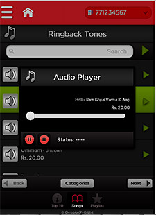 - Download music to the users Mobile Ring Back Tone (RBT) platform