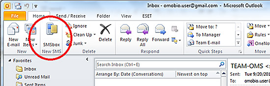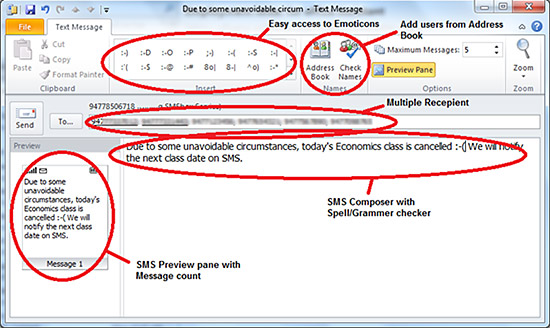 For easy SMS composing, add SMSbox in Outlook toolbar