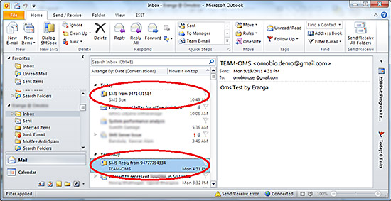 - Send and receive SMS from outlook